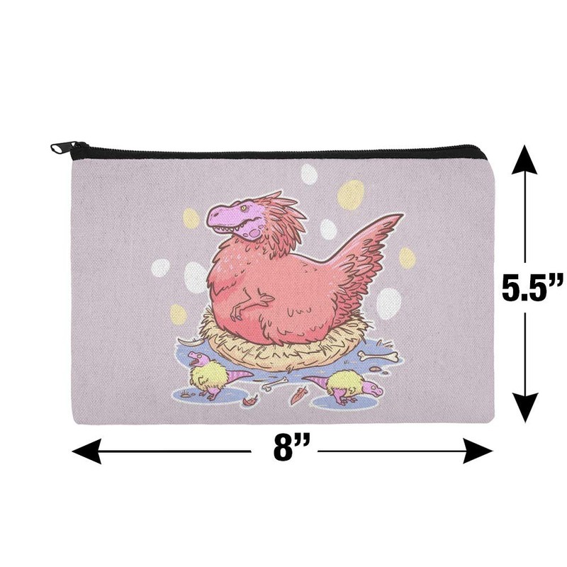 Feathered Tyrannosaurus Rex Dinosaur Nesting With Babies Makeup Cosmetic Bag Organizer Pouch