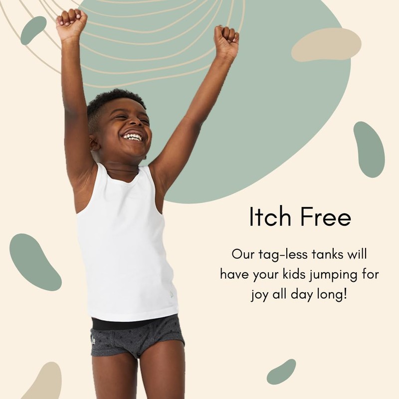 Feathers Boys White Tank 100% Cotton Super Soft Tagless Undershirts 3-Pack