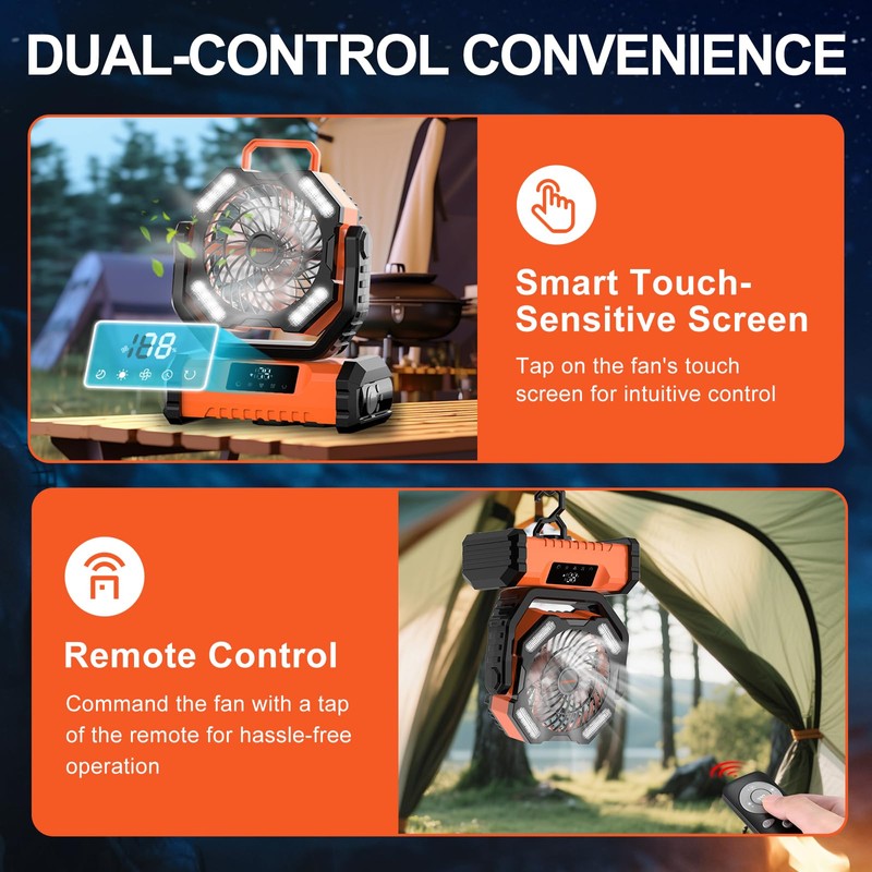- Convenient Dual Control Design: Touch screen and remote control operation allow you to easily adjust the portable fan's functions even in complex outdoor environments, eliminating the need for manual operation and providing great convenience