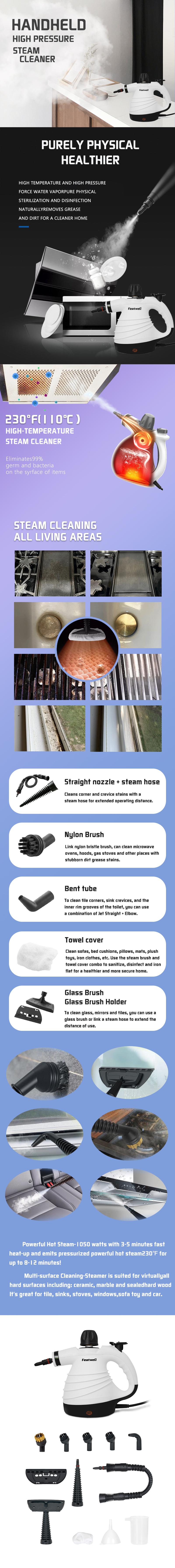 Featwell Pressurized Handheld Multi-Surface Natural Steam Cleaner with 12 pcs Accessories,Multi-Purpose Steamer,Safe for Kids and Pets