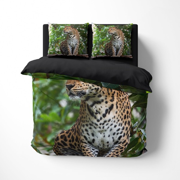 FEBE 3D Cheetah Bed Linen Duvet Cover Set 135 x 200 cm + Pillowcase 80 x 80 cm Reversible Bed Linen 2-Piece with Zip