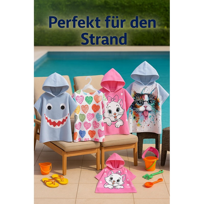 - Colorful Patterns and Graphics The colorful patterns and graphics on the bath ponchos stimulate children's imagination and bring joy to their day. Whether cute animal motifs, adventurous jungle scenes or cheerful rainbows - there is the right design for every taste.