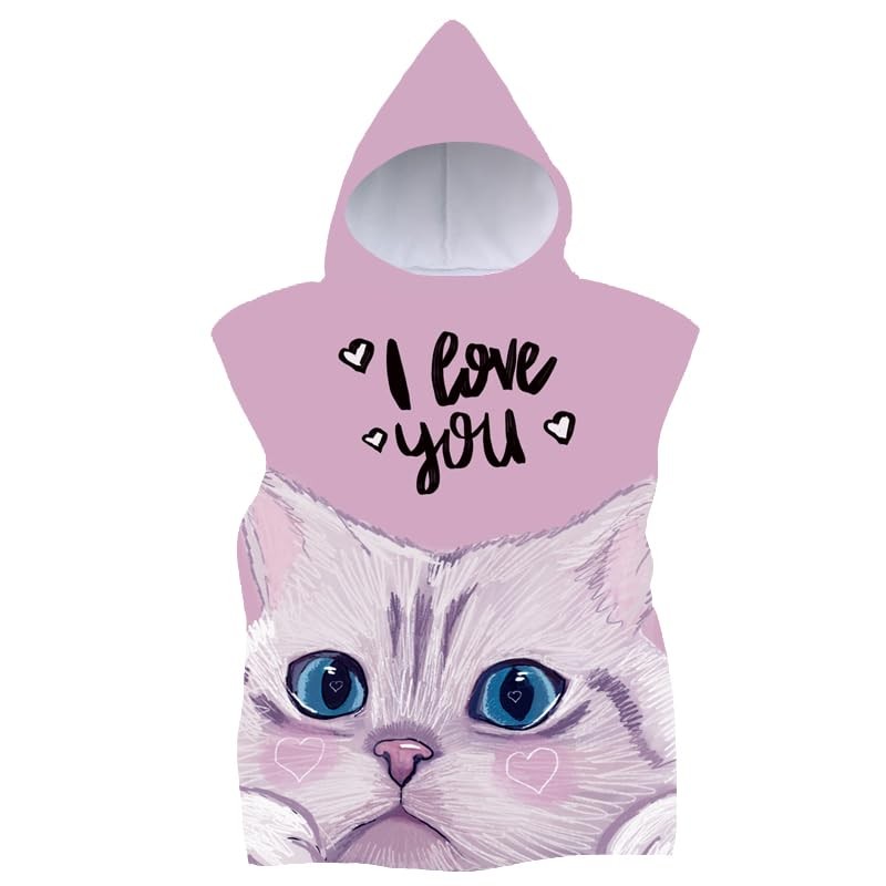FEBE Bath Poncho Children's Bath Towel with Hood Bathrobe for Toddlers, Cat Love, Unit size