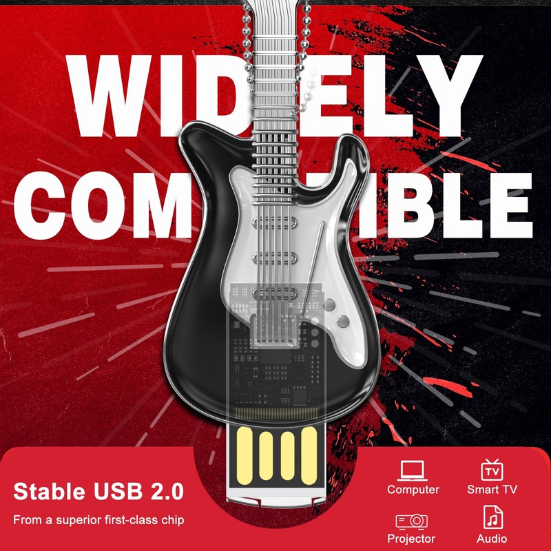 FEBNISCTE Metal Guitar USB 2.0 Stick 16GB 32GB USB Flash Drive with Gift Box, Black 16gb