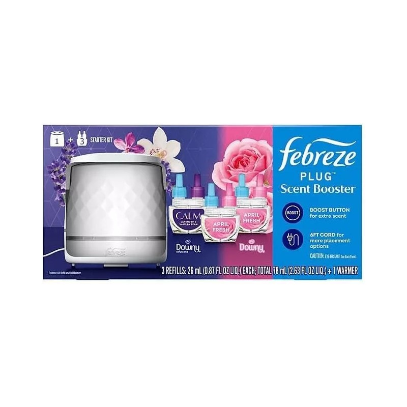 Febreze PLUG Scent Booster Kit, CALM Lavender + Vanilla Bean and April Fresh, 1 Device +