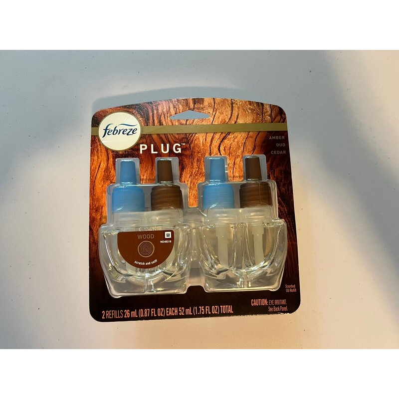 Febreze Plug Wood Amber Oud Cedar Scented 2x26ml Oil Refill Pack NEW 52ml Total