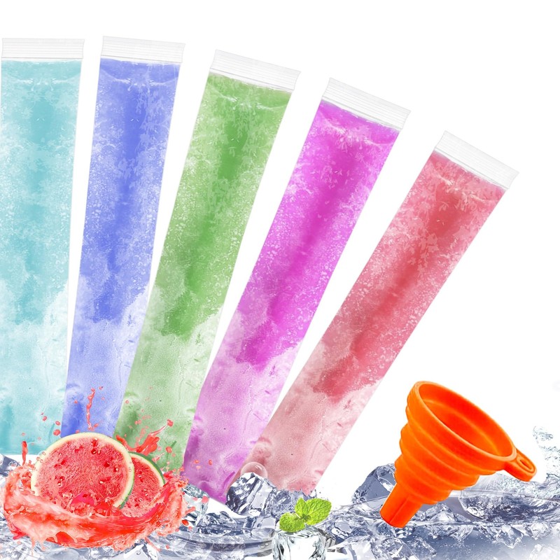 - Easy to Use: The design of the funnel makes it easy to pour popsicle liquid, avoiding leakage and waste.In addition, the size of the popsicle bags sealable is 22 x 4.5 cm/8.67 x 1.78 inch, and the appropriate size is suitable for making yogurt sticks, ice cream, crystal sugar, juice, DIY ice, jelly, snacks, crystal sugar, fruit and vegetable blocks or other frozen blocks