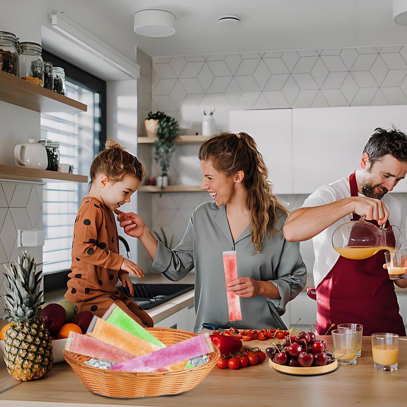 - Making Delicious Homemade Popsicles: You can easily make all kinds of delicious homemade popsicles at home with 100pcs popsicle bags. Whether fresh fruit flavor or rich chocolate and cream flavor, ice pop bags can be ideally sealed, bringing you and your family a cool and sweet summer enjoyment