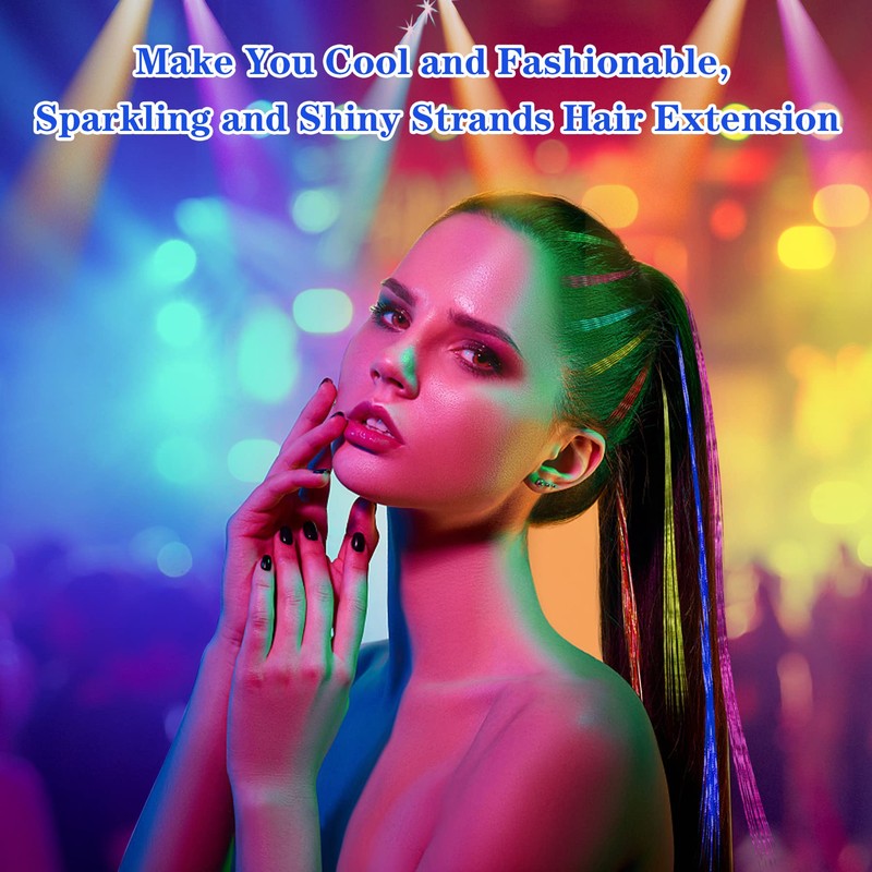 - Easy to Use: Tie a knot and fix tinsel hair on your hair, tinsel hair can last several weeks, even suffer from washing, drying, and flat ironing.