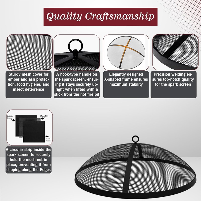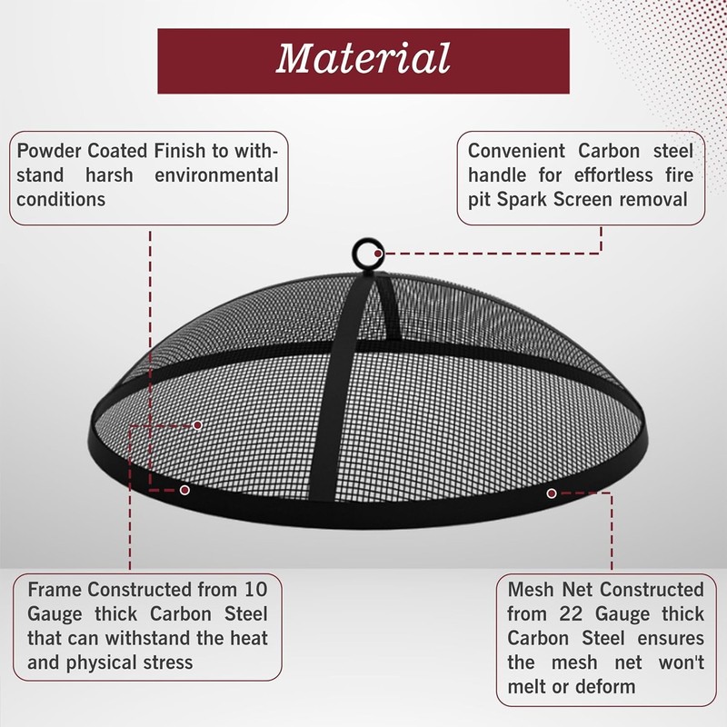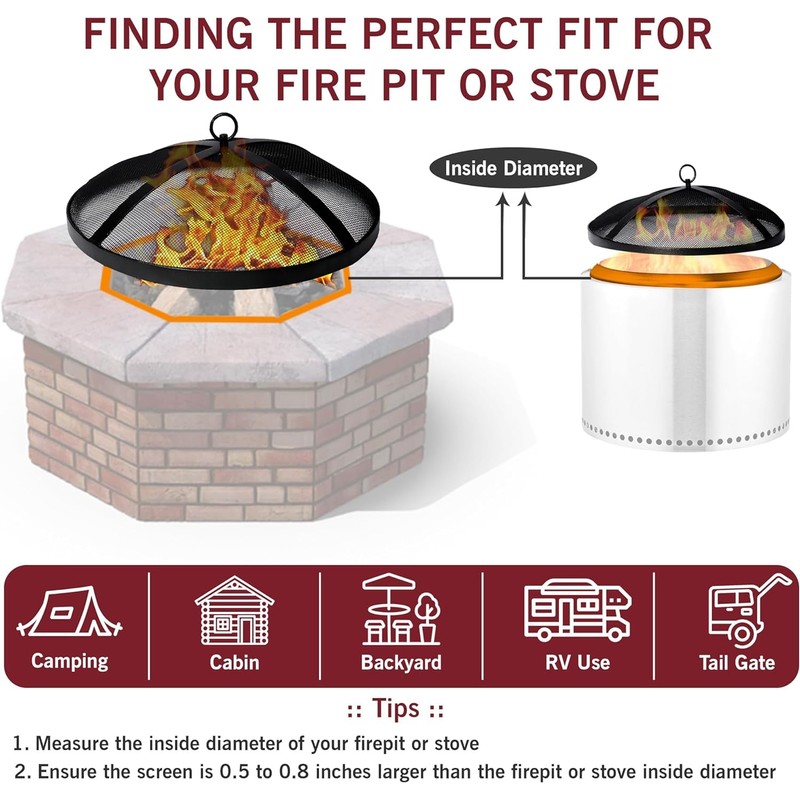 - Long Lasting: Our firepit screen round mesh top has a powder coated finish, this fire pit screen can withstand harsh environment making it a durable and long-lasting addition to your fire pit accessories. Ideal for outdoor fireplace and outdoor stove usage.