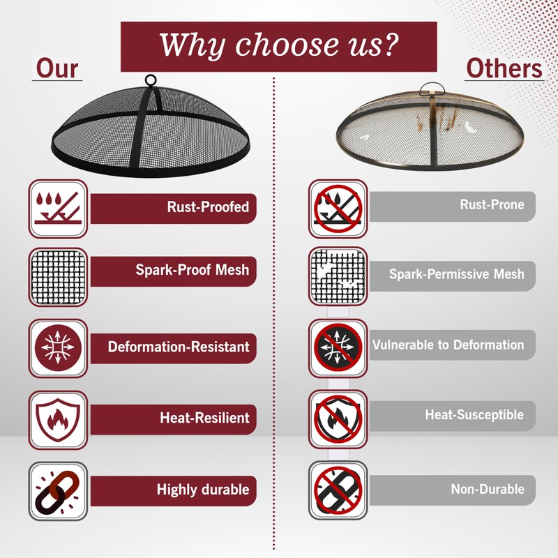 - Long Lasting: Our firepit screen round mesh top has a powder coated finish, this fire pit screen can withstand harsh environment making it a durable and long-lasting addition to your fire pit accessories. Ideal for outdoor fireplace and outdoor stove usage.