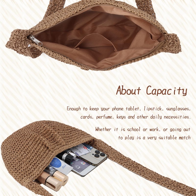 - 【Roomy Capacity】The size of this straw handbag is 13.78'' x 1.57'' x 8.27''/35CM x 4CM x 21CM, and Handle Height 10.3''/26CM, our straw tote bag is spacious enough to hold all your essentials, including an iPad, wallet, cellphones, folding umbrella, sunglasses, cosmetics and so on.