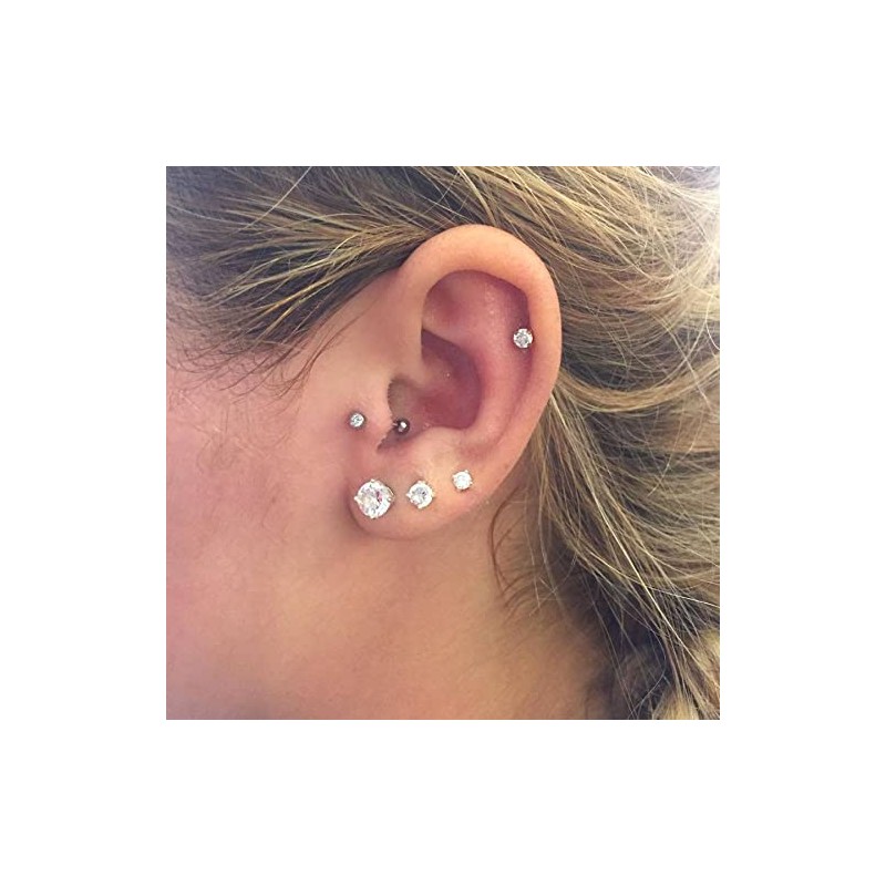 FECTAS 6pcs Threadless Push-In Cartilage Tragus Helix Piercing Jewellery Flat Back Stud Earrings Stainless Steel 16G 6 mm 8 mm 10 mm Lip Bars Labret Stud Lip Ear Medusa Piercing 2 mm 3 mm 4 mm CZ,