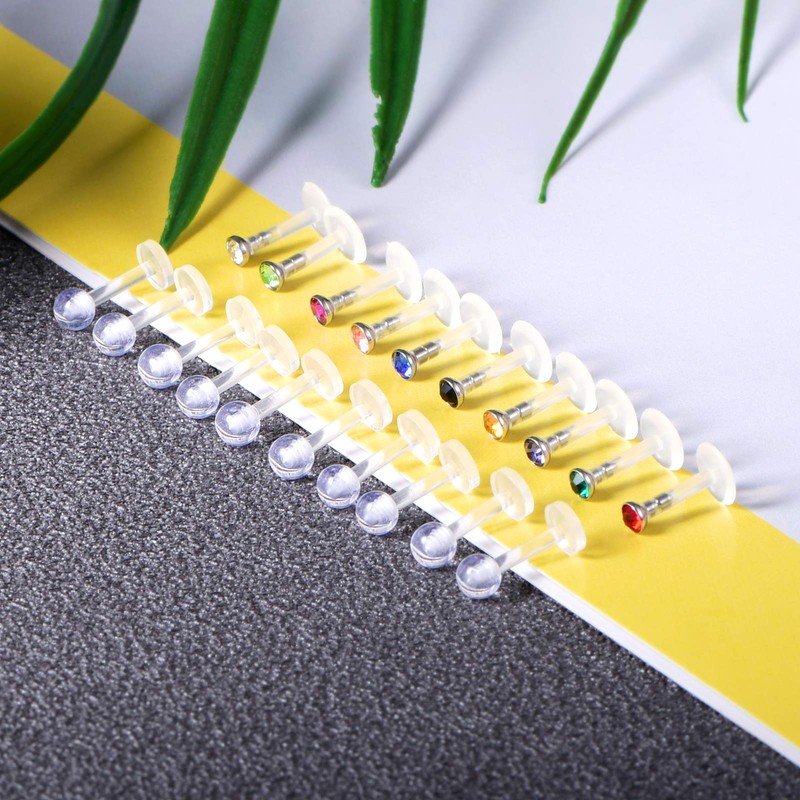 Fectas Set of 20 Lip Piercings Labret Monroe Plug Piercings Bioflex Flexible Ear Tragus Helix Ear Piercing 6 mm 8 mm 10 mm, UV