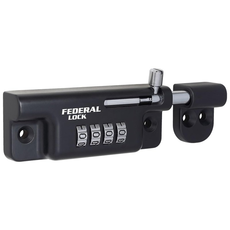 Federal Lock Combination Locking Bolt, Heavy Duty Sliding Lock with 4 Digit Resettable Code - Black