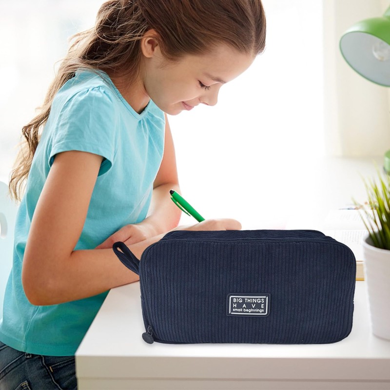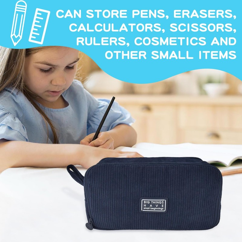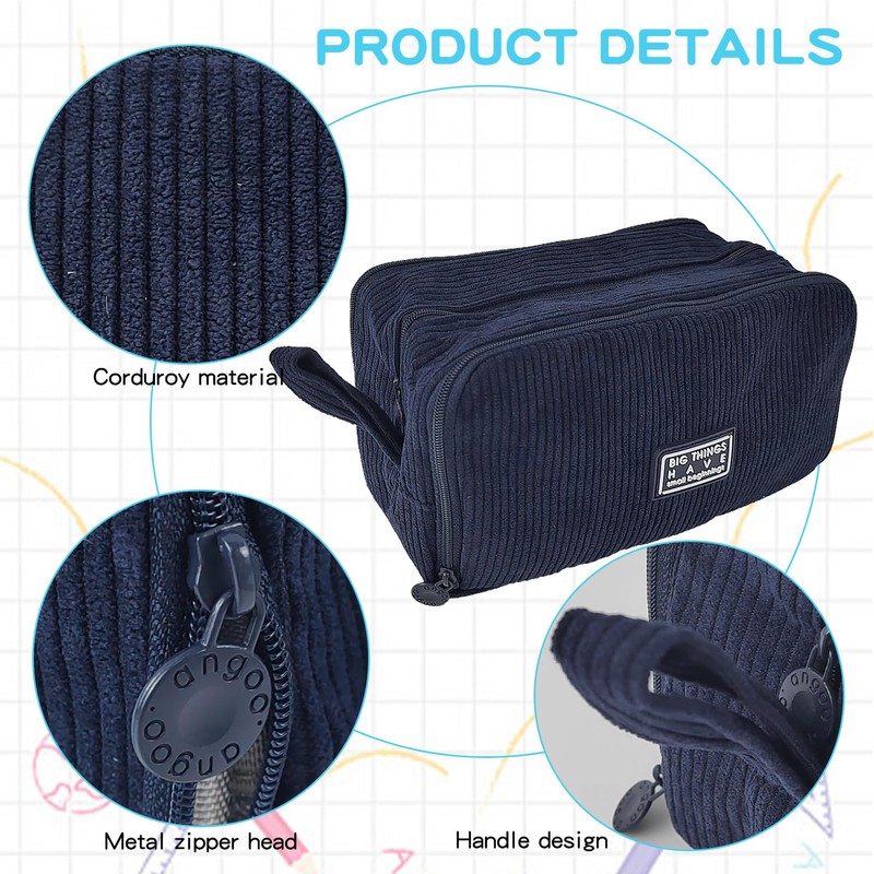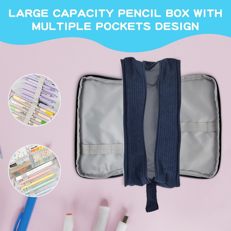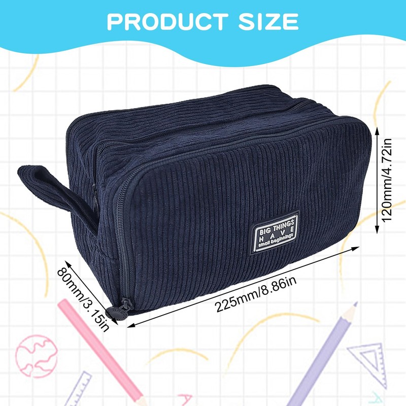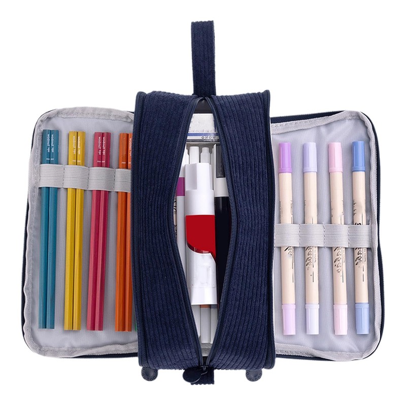 Federmäppchen aus Cord-Stoff (Dunkelblau), Schlamperrolle mit 3 Fächern & großer Kapazität, für 50+ Stifte, Robustes Schul-Zubehör, mit Reißverschluss, Ideal für Schule, Uni & Büro (dark blue)