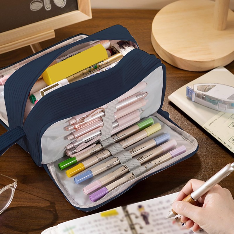 - 【Durchdachtes 3-Fach-Organisationssystem】 15 elastische Stifthalter - für Stifte, Marker und Pinsel sicher fixiert. 2 Netzfächer - perfekt für Radiergummi, USB-Sticks. Großzügiges Mittelfach, fasst etwas größere Schreibwaren wie Marker.