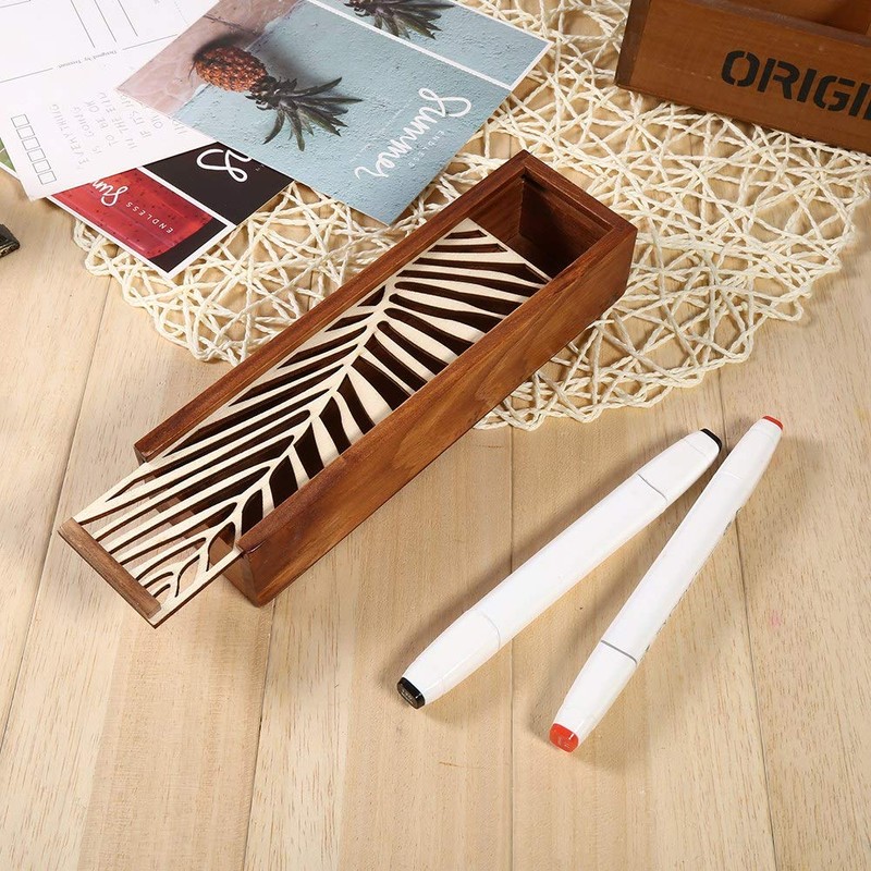 Federmäppchen aus Holz, 4 Arten, Schreibtisch-Aufbewahrung, Organizer, Studenten, Schule, Büro (Blatt-Typ)