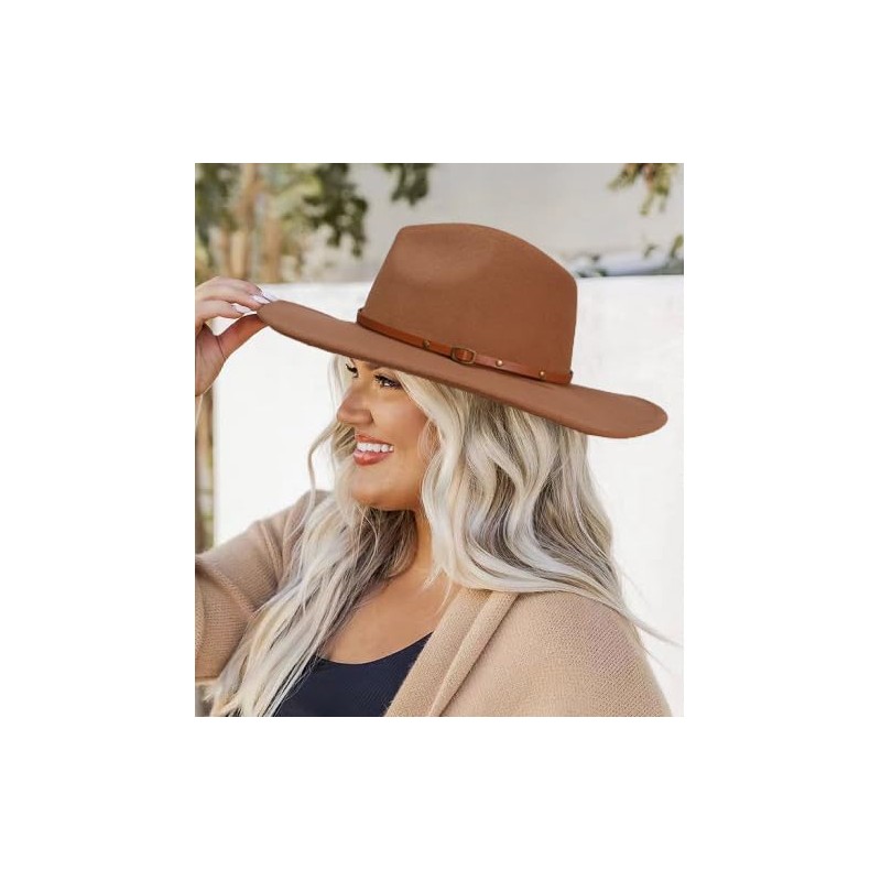 Fedora Hat - Women's Fashionable Wide Brim Hat - Belt Buckle Hats for Women - Sun Hat - Cowgirl Hat - Cowboy Hat - Felt Hat - Beach Hat Fawn