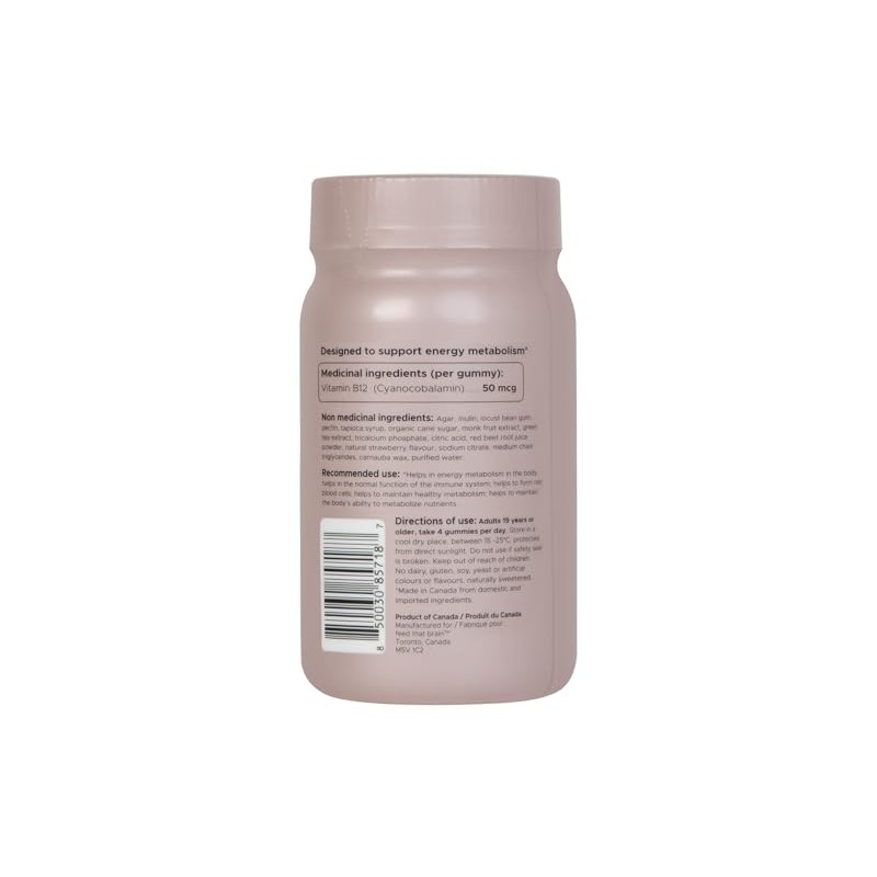 Feed That Brain Feed That Brain Energy Gummy, Vitamin B12, Green Tea Extract, MCT (Strawberry Swirl) - 60pc Gluten-Free Vegan