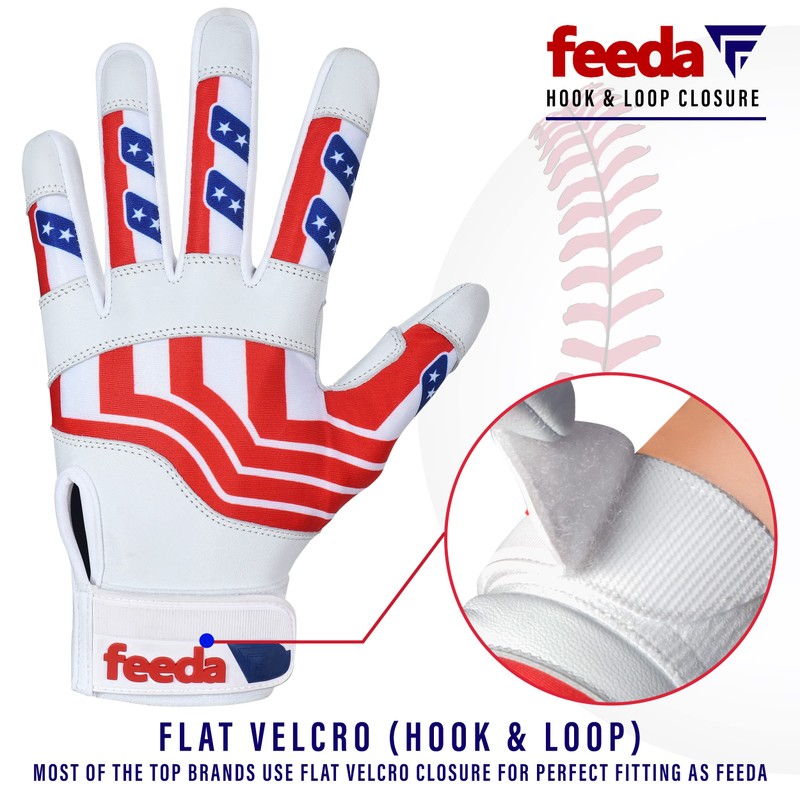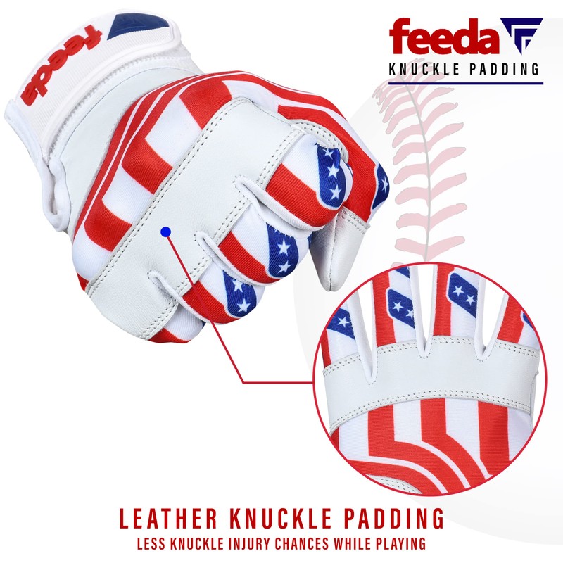 Feeda American Flag Baseball & Softball Batting Gloves for Youth & Adults (Classic, Youth X Large)