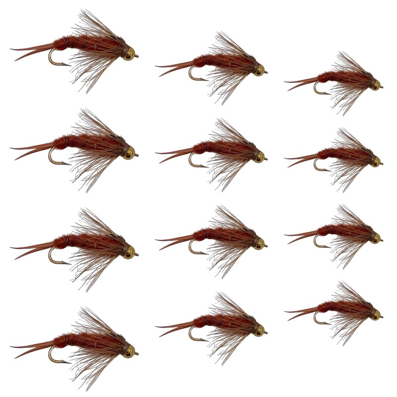 Feeder Creek Fly Fishing Flies | Bead Head and Regular Stonefly Nymph Flies | 12pc Wet Flies | Trout Flies and Bass Flies | Fly Fishing Assortment (Bead Head Brown Size 10,12,14 Combo)