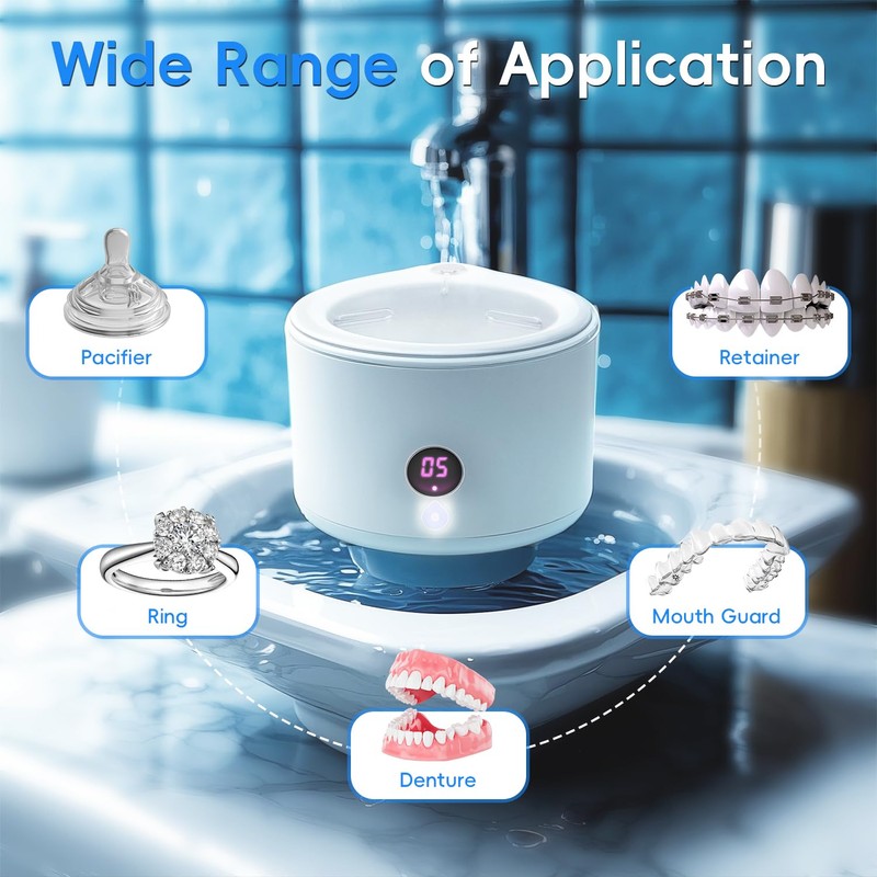 - VERSATILE CLEANING: Professional ultrasonic cleaner suitable for retainers, mouth guards, dentures, rings, pacifiers, and other small dental items