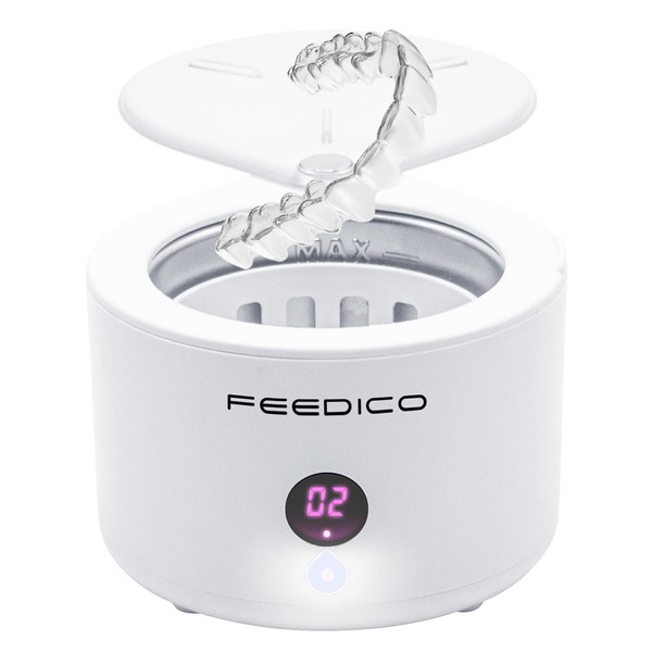 Feedico Ultrasonic 45kHz Retainer Cleaner, Machine for Dentures, Mouth Guards, Aligner, Toothbrush Heads, Jewelry, 4 Modes for All Dental Appliances with Digital Timer & 200ML Dental Cleaning Pod
