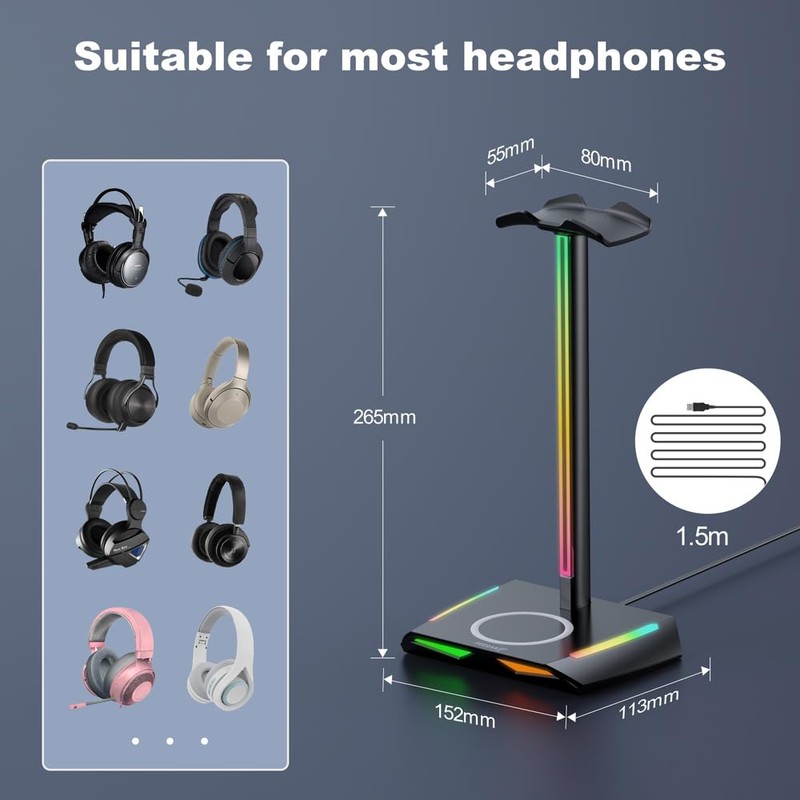 - Universal compatibility: headphone stand head. The RGB headphone holder fits all sizes of headsets. The wide base and wide curved stand can better protect your headset.