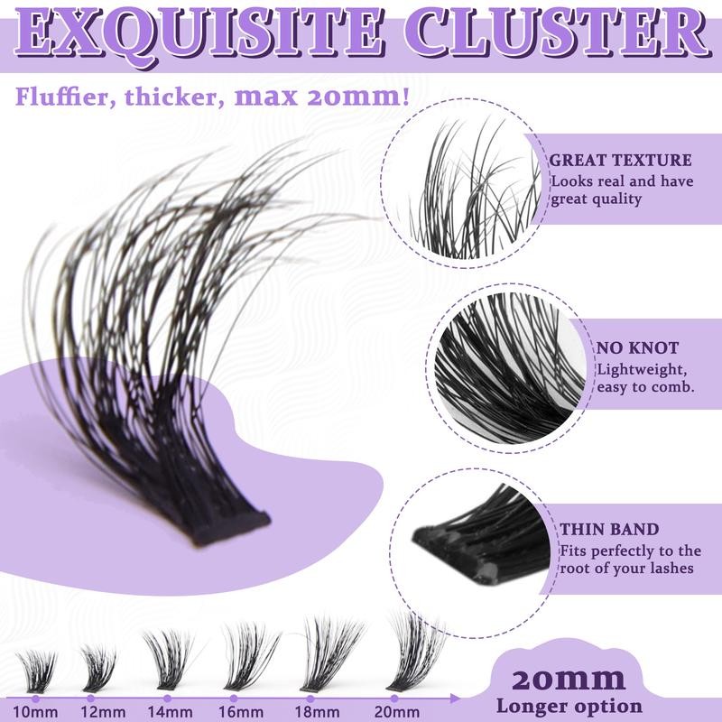 10mm-20mm mixed clusters lashes. DIY your own eyelash clusters at home to create the different lash effect that is super popular these days. Eyelashes are easy to apply, gorgeous, and the curler is not easy to spread. It takes less time to complete a cluster of eye lashes for each eye. Easy to get the super beautiful holiday makeup.