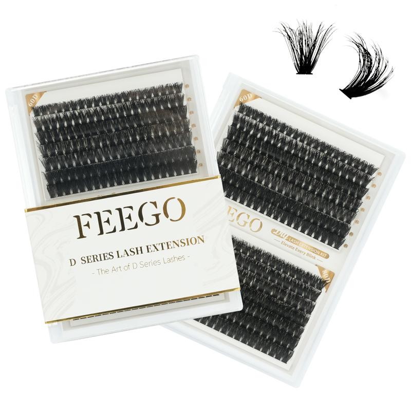 - FEEGO 200D Lashes Extension Kit Thick Eyelash Extension Kit 10-20mm Lash Clusters Individual Eyelashes Kit With Lash Bond and Seal D Curl Cluster Eyelash