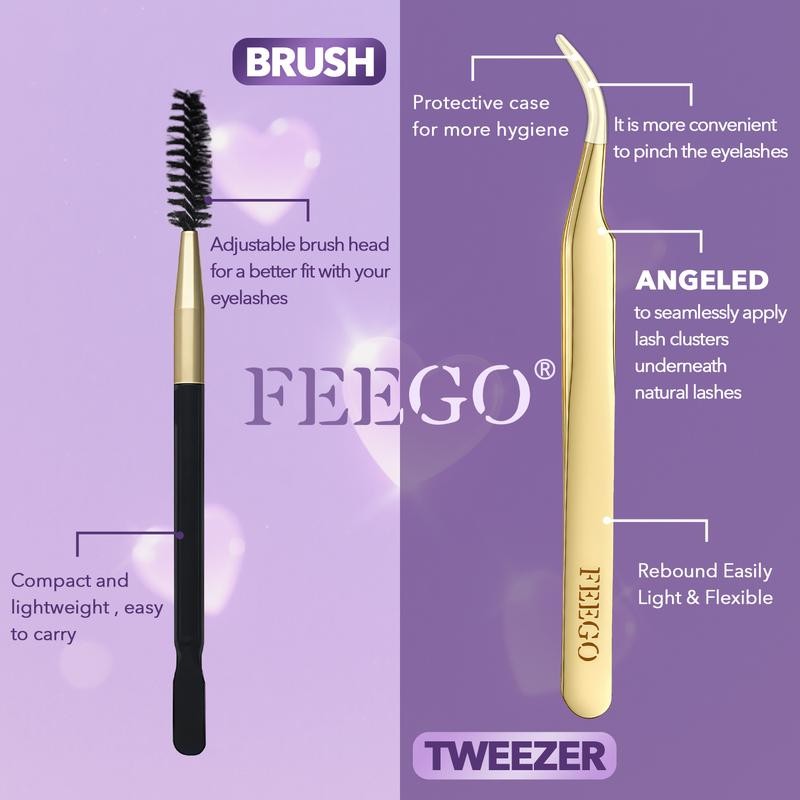 - FEEGO 200D Lashes Extension Kit Thick Eyelash Extension Kit 10-20mm Lash Clusters Individual Eyelashes Kit With Lash Bond and Seal D Curl Cluster Eyelash