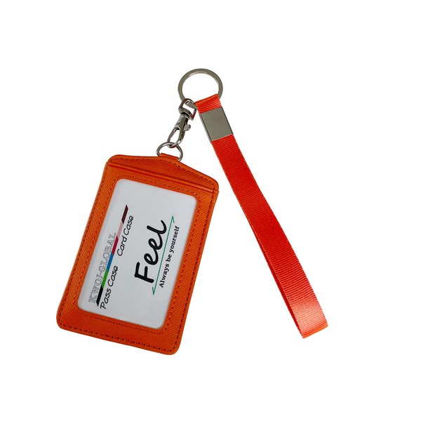 [Feel] Commuter Pass Case with Strap" Pass Holder, IC Card Case, Card Case, Commuting to Work or School, Transportation IC Card (Suica TOICA ICOCA PASMO PiTaPa), orange
