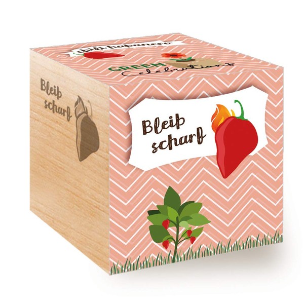 Feel Green 296664 Celebrations Ecocube, Chili Habanero, Wooden Cube with Laser Engraving "Stay Sharp", Sustainable Gift Idea, Growing Set, Made in Austria
