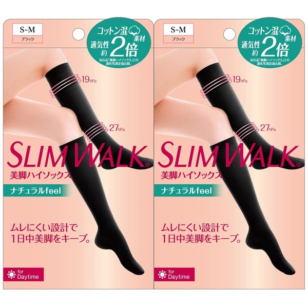 着圧ソックス スリムウォーク ナチュラルfeel ハイソックス レディース ブラック S-M 2個パック 着圧 ソックス