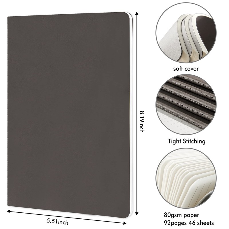 • Feela 36 Pack Soft Cover Journals include 36 gray A5 college ruled soft cover travel journals. 250 GSM colored paper cover outside and 80 GSM smooth writing lined pages inside.