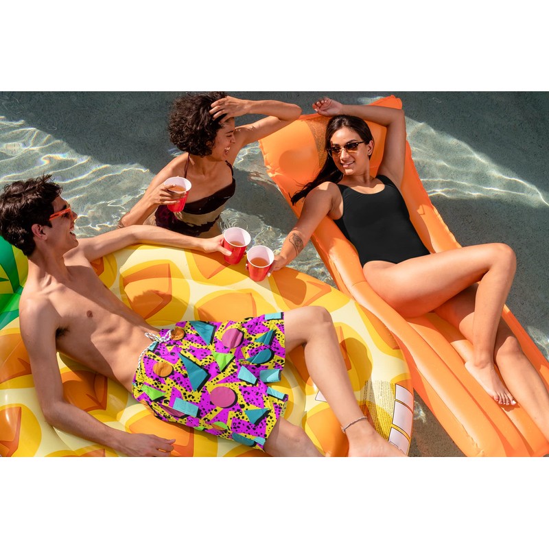 feelacle Retro 80s 90s Style Mens Swim Trunks 9 Inch Inseam Board Shorts Beach Swimwear Bathing Suit with Compression Liner and Pockets 3X-Large