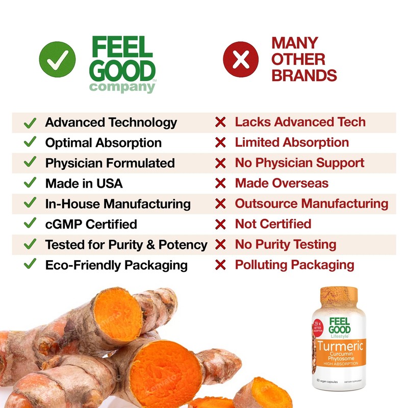 FeelGood Superfoods FeelGood Superfoods - Turmeric Curcumin Capsules - Ultra High Absorption - 60ct - 1000mg per Serving