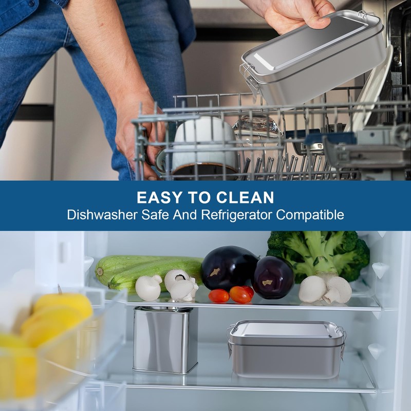 - Easy to clean: the design of the metal lunch box is easy to clean and can be cleaned by hand as well as in the dishwasher. This makes daily cleaning a breeze and your new stainless steel lunch box retains its shine. The reusable metal lunch box is a perfect and sustainable alternative to disposable products such as plastic containers or paper bags