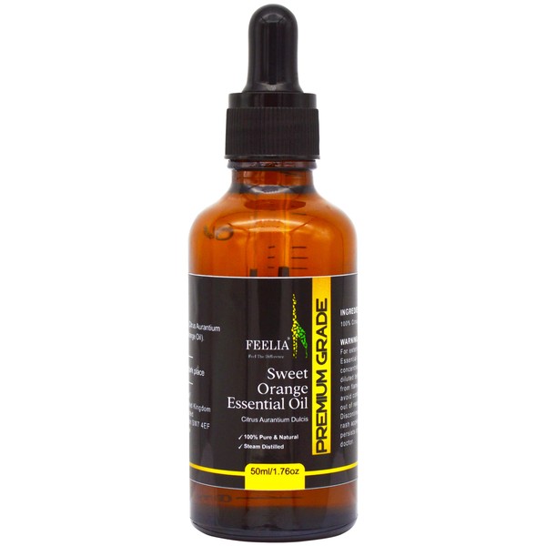Feelia - Sweet Orange Essential Oils - 100% Pure & Natural, Premium Grade, Steam Distilled & Undiluted, Great for Aromatherapy & Relaxation (50ml, Sweet Orange)