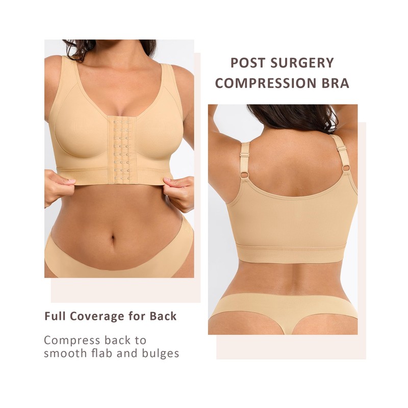- EASY ADJUSTMENTS: Our shaping compression bra offers versatile adjustments to accommodate various cup sizes effortlessly. The front closure bra features three rows of adjustable hooks, allowing you to find the most suitable fit during your recovery. The wide shoulder straps gently distribute pressure to reduce shoulder strain, and the adjustable straps allow you to customize the fit, ensuring a more personalized and comfortable experience for your bust.