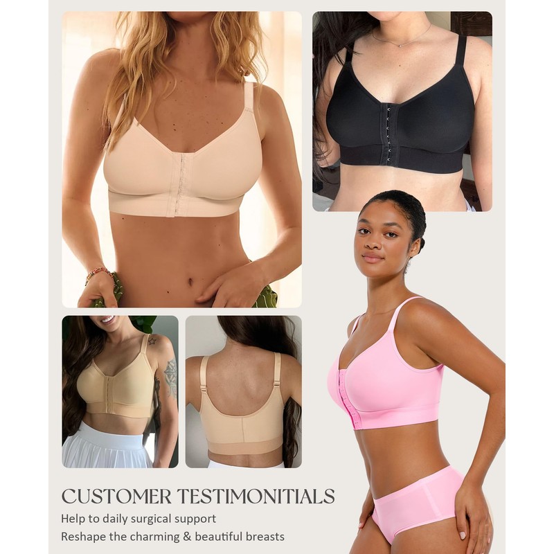 - FITS COMFORTABLY: Our surgical bra is non-padded and made of ultra-fine fiber yarn with a high content of spandex. It features a smooth fabric surface, comfortable texture, seamless fit, and contours to the body without leaving marks, reshaping body contours. Soft and non-restrictive, it can be worn comfortably all day long with loungewear or similar clothing.