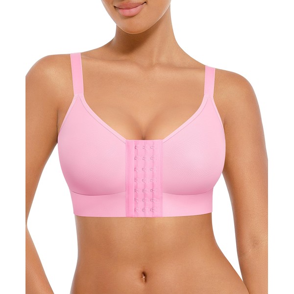 FeelinGirl Post Surgery Bras for Womem Front Closure Mastectomy Bras Surgical Wireless Full Coverage Compression Bra, Fuchsia, Small
