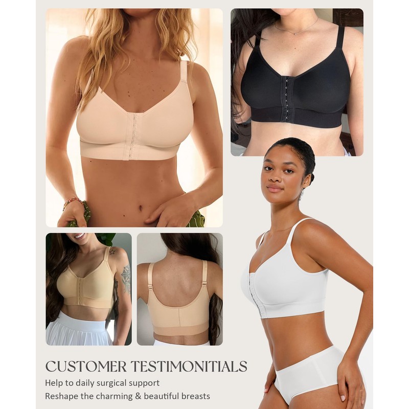 - ADJUSTABLE FRONT CLOSURE BRAS FOR WOMEN: This post surgery compression bra blends style and support. With comfortable adjustable shoulder straps, it allows you to customize compression levels as needed. Multiple front closures and easy-access design let you adjust compression as you heal, easy wear and removal, facilitating postoperative examinations. This mastectomy bra ensures smooth recovery and lasting comfort.