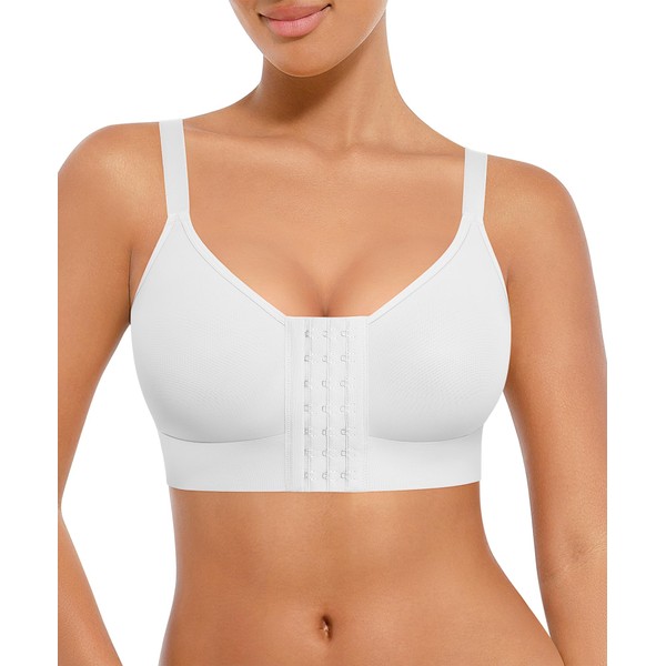 FeelinGirl Post Surgery Bras for Womem Front Closure Mastectomy Bras Surgical Wireless Full Coverage Compression Bra, White, 3X-Large