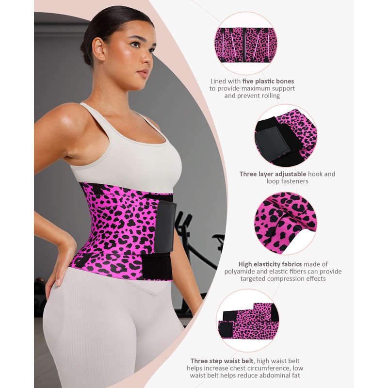 - Occasions: This waist trainer belt can achieve the hourglass shape you want, suitable for wearing anytime, anywhere. Whether it's for daily activities, running, Pilates, yoga, surfing, cycling, jogging, hiking, muscle training, dynamic stretching, or postpartum recovery, this garment is suitable for various activities. Available in black, purple, leopard print, and rose leopard print.