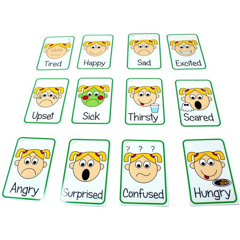 Feelings and Emotions Flash Cards Girls - Non Verbal Visual Aid Speech Delay for Children and adults with Autism, Special Needs ASD ADHD