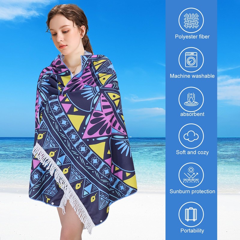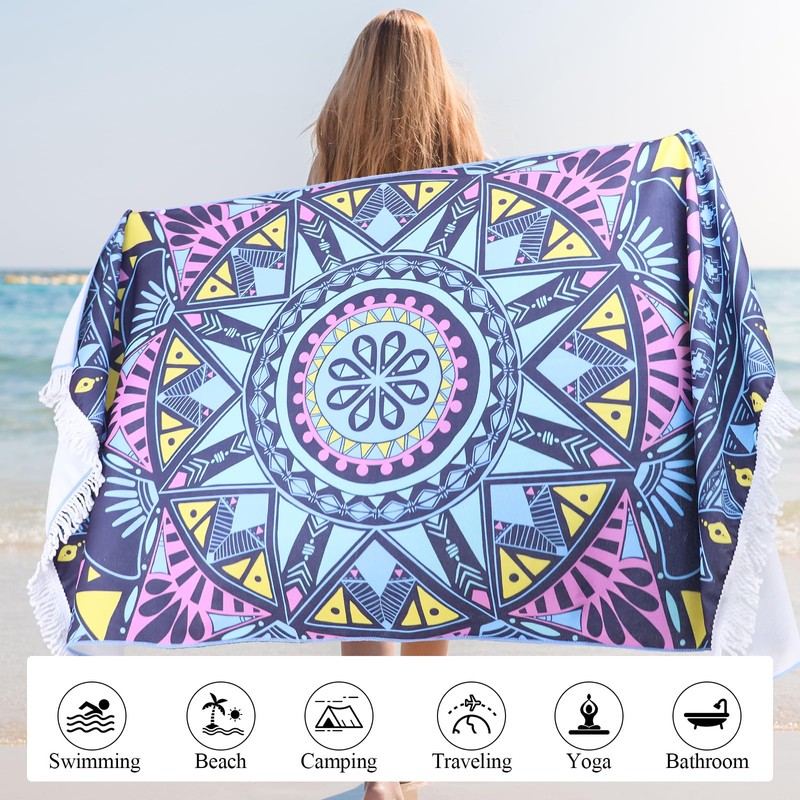 - Material: this new design geometric ethnic style beach towel made of soft microfiber is lightweight, soft and breathable, it is super absorbent and dries in no time, comfortable and durable, perfect for outdoor activities.