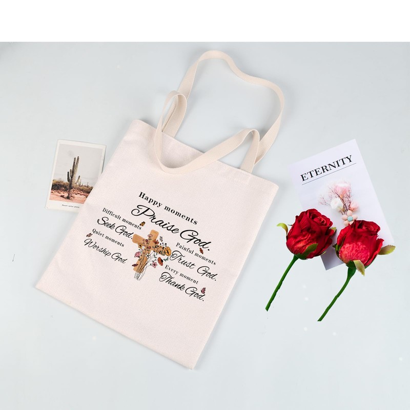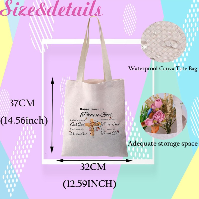FEELMEM Motivational Bible Verses Tote Bag Faith Mental Health Tote Bag Happy Moments Praise God Religious Christian Gift (Beige)