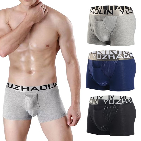 Feelonger Mens Functional Boxers Briefs Separate Underwear Enhancing Pouch Trunks Short Leg Boxers (US, Alpha, 4X-Large, Regular, Regular, 3Pack-2)